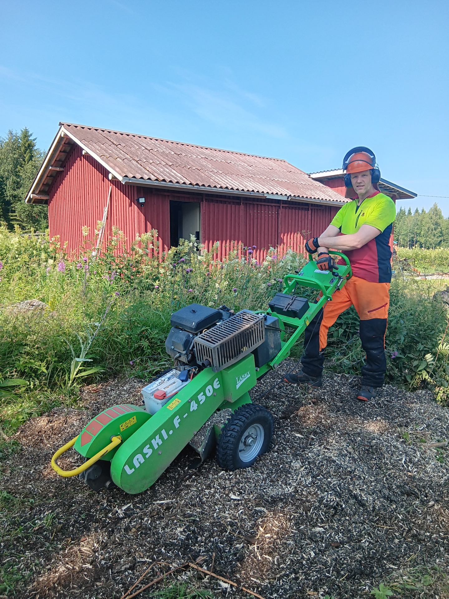 Pihapuut kaadetaan ja tarvittaessa katkotaan, halotaan ja pinotaan. Risut viedään tarvittaessa pois.